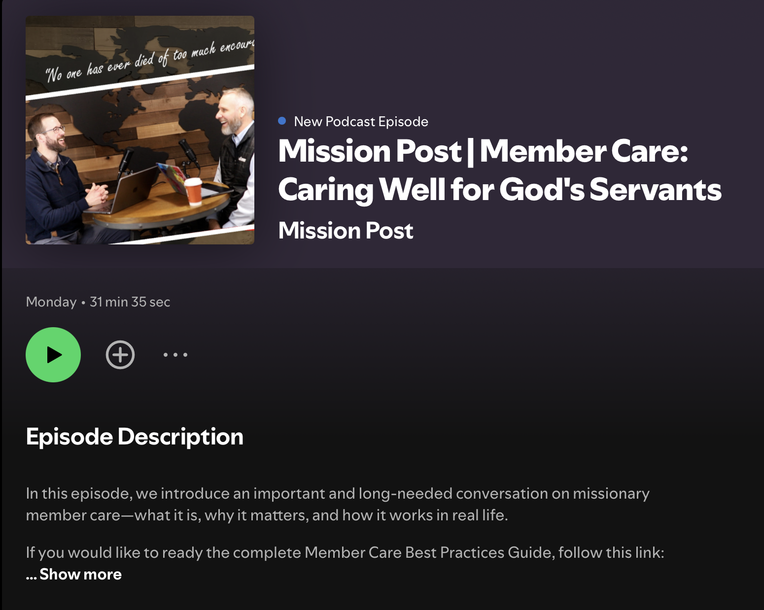 Member Care Podcast Episode on Mission Post!